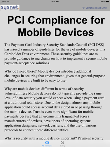 Sysnet PCI Compliance and MDM provides users with a comprehensive compliance checklist for PCI compliance on Apple mobile devices.