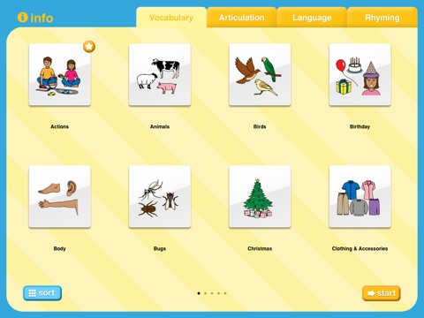 Designed for Educators, Speech-Language Pathologists (SLPs), Parents/Caregivers the app is free to download and includes 4 free Bingo Boards: Animals (Vocabulary), B (Articulation), Alphabet (Language), and the Rhyming Words Sample Deck (Rhyming). The full version is available for purchase directly from the iTunes store and contains over 60 Bingo boards.