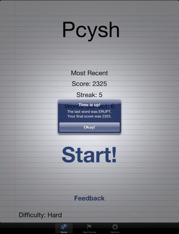 Pcysh (pronounced "psych") is an insanely fun and addictive word game where you attempt to spell as many challenging five letter words as you can in two minutes. To help achieve the highest score possible there are lots of hints and special power-ups. Challenge your friends or work as a team to earn the best score.