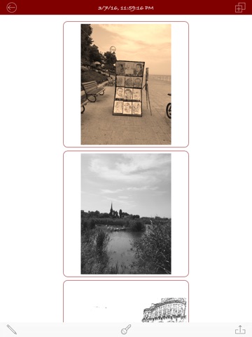 Take photos with your iPhone/iPad/iPod camera or import already existing photos to your art book. Rotate and apply various visual effects to give your photos a more artistic look and save the result as a multipage PDF or multiple JPEG images.
