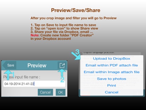 - Moreover you can upload to DropBox , Google Drive, iBook, iCloud ...