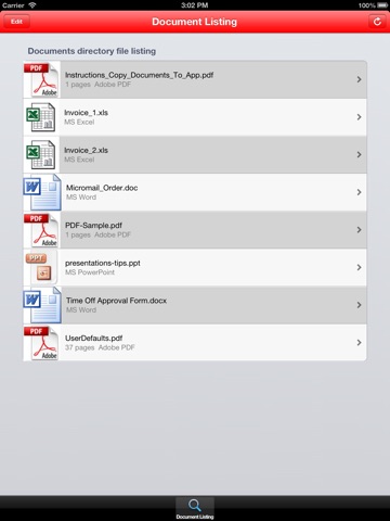 Adobe PDF, Microsoft Word, Microsoft Excel, Microsoft Powerpoint and Rich Text Format RTF documents on your iPhone or iPad.