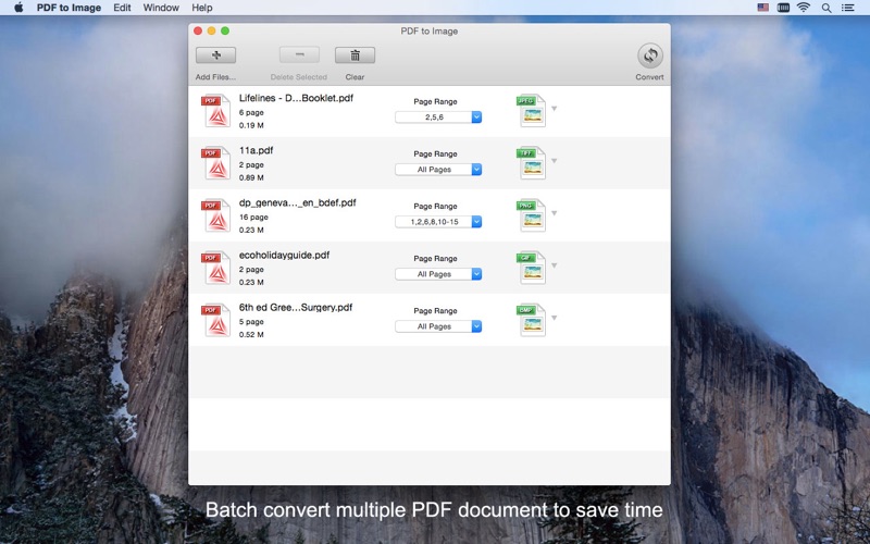- Convert wanted pages(1,3,8,10-22 or all pages) of PDFs into images.