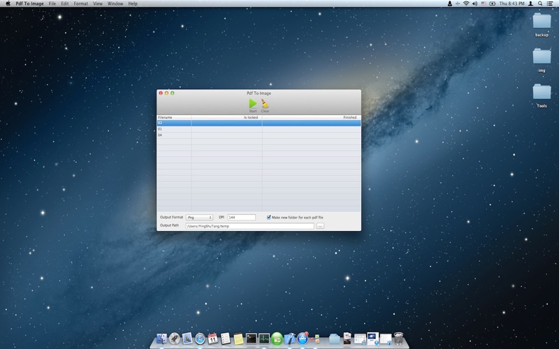 The program can convert pdf file format for images, simple to use, supports the current popular formats (PNG, Bitmap, Jpg, etc.), you will no longer use inconvenient online conversion, support conversion to the specified directory or each file a separatefolder.