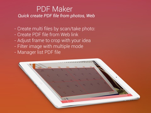 PDF Maker help you to create new PDF file from Photos, Web, Scan documents then share via Email, Dropbox, iCloud, Dropbox, Google Drive, iBooks