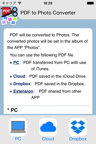 3. tap the button “PDF to Photo”.