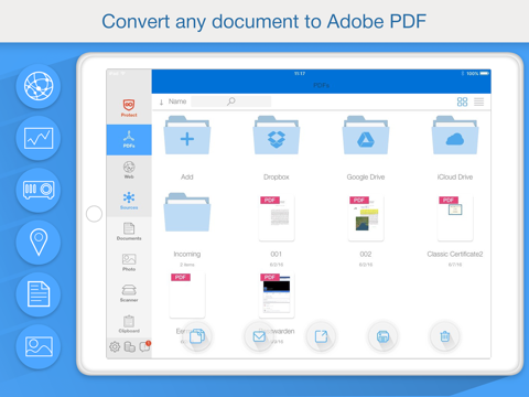 Très utile pour transformer un document en PDF et pouvoir, par exemple, lannoter dans Upad ou GoodReader. Les documents sont convertis correctement tels quils apparaissent dans la visionneuse iOS. Pour certains documents (PowerPoint avec polices non reconnues par exemple) ce nest pas parfait, mais cest mieux que rien. Seul regret, jaimerais bien pouvoir accéder à ma boîte mail pour convertir certains messages en PDF.