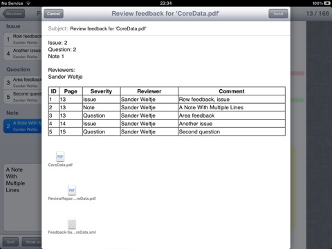 This is the free try before you buy version of Pdf Review. Pdf Review is an annotation tool for pdf that has an ordered list containing the feedback and notes without obfuscating the original pdf. It supports the full review workflow. Reviewers can easily add feedback with a single tap and send an organized report to the author. The author can merge all feedback into a single list and assign actions to them. The free version has limited functionality like the restriction on the number of feedback per review.
