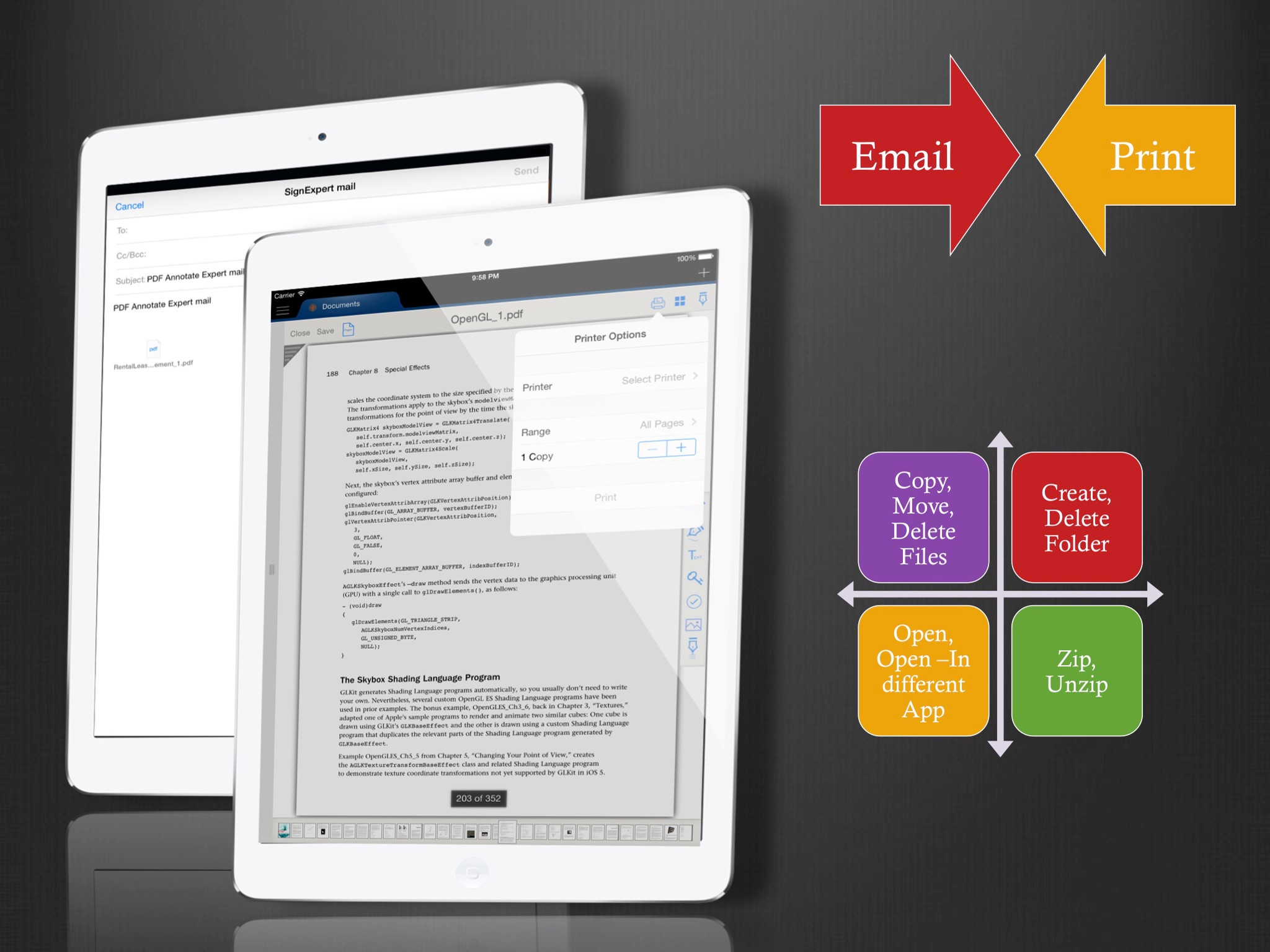 • Email and Print files.