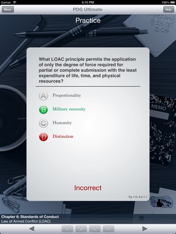 Worried about compromising your test? Not a chance. Airmen are forbidden to use test prep tools that use questions taken from previous tests, and we would not put you in that position. PDG Ultimate is a study aid built from material taken out of the Air Force’s own published study material. No actual examination was used to generate these questions. To drive this point home, every question includes a specific paragraph reference that shows you right where the information exists in the PDG.