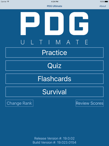 Ready for something a little more fun? Jump into the cockpit and answer a series of questions from a chapter of your choosing. Be careful, you lose fuel each time you answer a question incorrectly. If you are good enough, you can make it to in-flight refueling points along the way. Can you reach the control tower before you run out of gas? Collect all six medals for each chapter to prove your PDG supremacy.