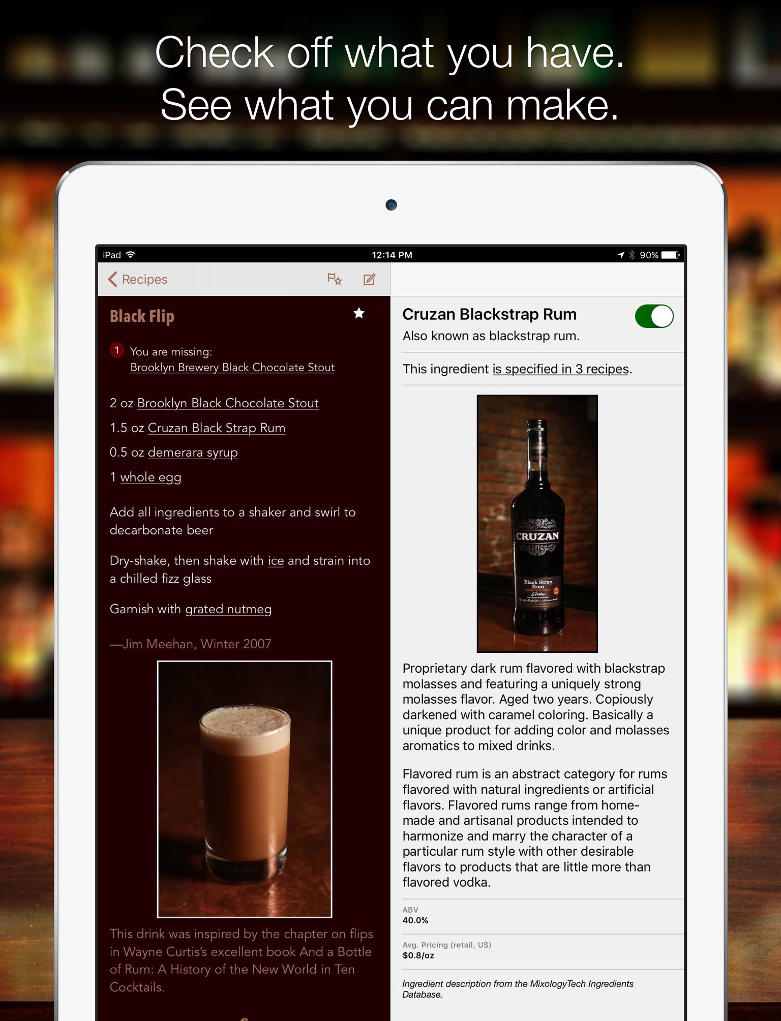 When I was in college I had a dream to make my friends any drink they wanted and drive a flying car. This was a fantasy, not the least of reasons because organizing a bar is difficult, and because flying cars do not exist. However, this app has allowed me to realize the dream in the most convenient way imaginable. This app makes the connections behind the recipes for you, helps you pick most useful things to buy, manage your inventory. Simply log your bar inventory. It then knows what you can make, what you cannot make, and helps you figure out spirits of opportunity to discover what to buy next to optimize the number of drinks you can make. It shows you which you are one or two ingredients away from making. Did I mention it does all that while featuring an incredible collection of well-curated recipes? It does that. I have not mixed a drink I did not enjoy. The developer supports the app like no other. I have never found such a kind, considerate, communicative developer who was so truly interested in understanding and assisting in supporting the app, despite the fact that I was running an older release of iOS. Some reviewers complain about the price. They are fools. For twice the price considering the curation, more efficient ingredient purchases because of the apps analytics, and the curation, this app is a bargain. The money I save in purcahses alone because the app optimizes those ingredients with which I can make the most drinks (I can discern and choose based on my individual taste from the sample it recommends). Then consider the curation: you are getting an almost mechanically intelligent version of a book that costs with shipping approximately $20. To this, add that you get great support and you carry the information everywhere because the developer has made it an app.