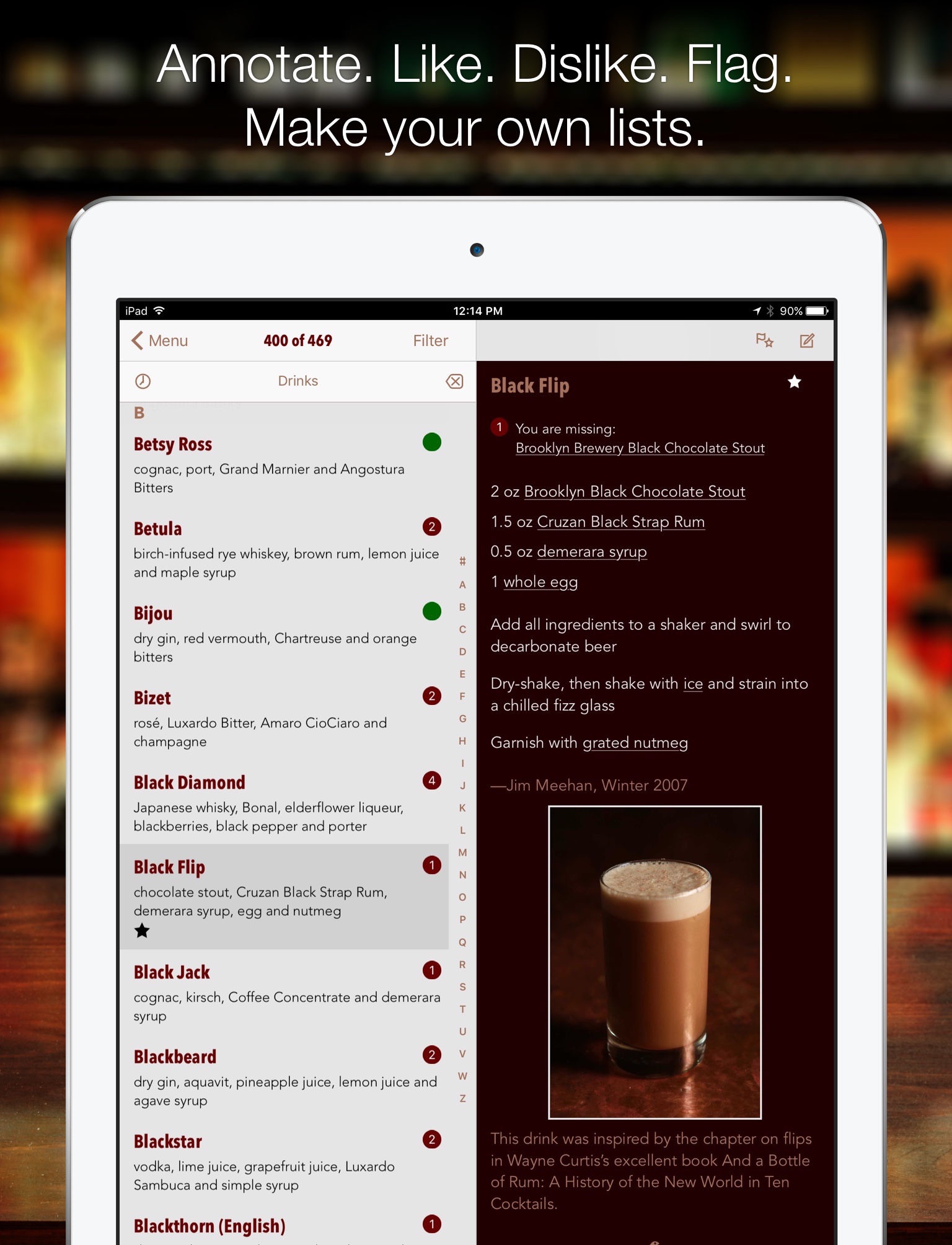 Love the app. Would be nice if one could add personal notes and ratings. Also, I noticed that the Junior recipe lists the original proportions, not the updated variation in the PDT book. Wondering if this is the case for many other cocktails...