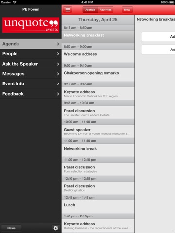 The official mobile application for the CEE Private Equity Forum 2013 targets at enhancing networking at the conference. Bringing closer all parties of the Forum, the app is the tool to navigate the event, get all essential event and agenda information, chat with other Attendees and ask questions to speakers via smart devices.