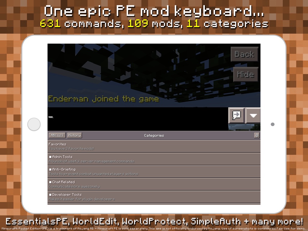 Unofficial. Ever wanted a better experience when playing modded multiplayer Minecraft PE Servers? Introducing — PE Mods, the only iOS keyboard to make using mods easier! #pemods