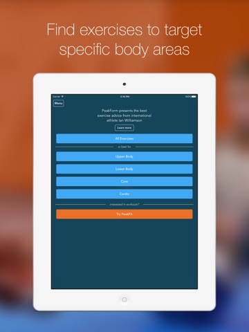 PeakForm has almost 100 exercises with HD videos showing perfect form and technique enabling you to get the maximum benefit with each push, lunge, squat, press-up or burpee.