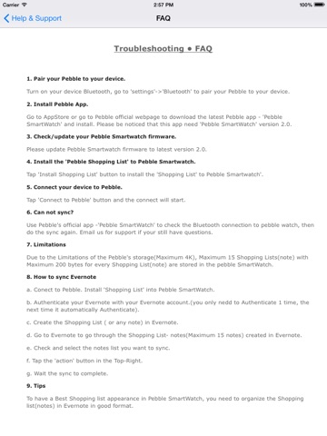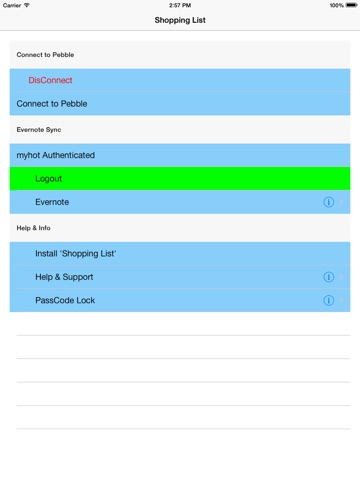 Download and sync the shopping list from your iPhone/iPod touch/iPad, or sync the shopping list from Evernote to Pebble smart watch. Easy and quick helper during your shopping. You could scroll down and up to browser all the shopping list items.