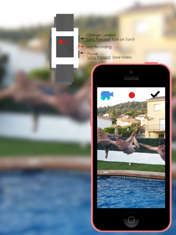 Now you can record, pause, resume, change front/back camera or even turn on iPhones or iPads torch pressing the pebble buttons.