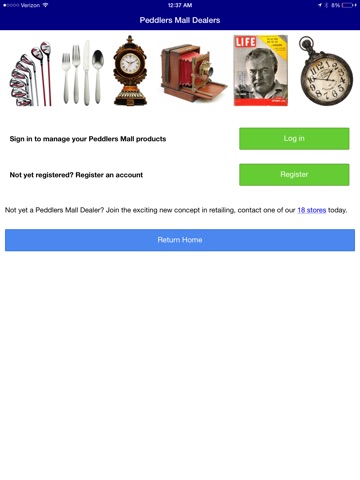 Tap into the most exciting retail marketplace in Kentucky and Ohio with the Peddlers Mall app for iPhone and iPad. Now you can browse and search for unique items in our stores, compare prices, and much more all form the palm of your hand. Dealers who have booth space in the store can also use the app to easily post their items for everyone to see their unique product inventory. These items you see can be purchased at your neighborhood Peddlers Mall retail store.