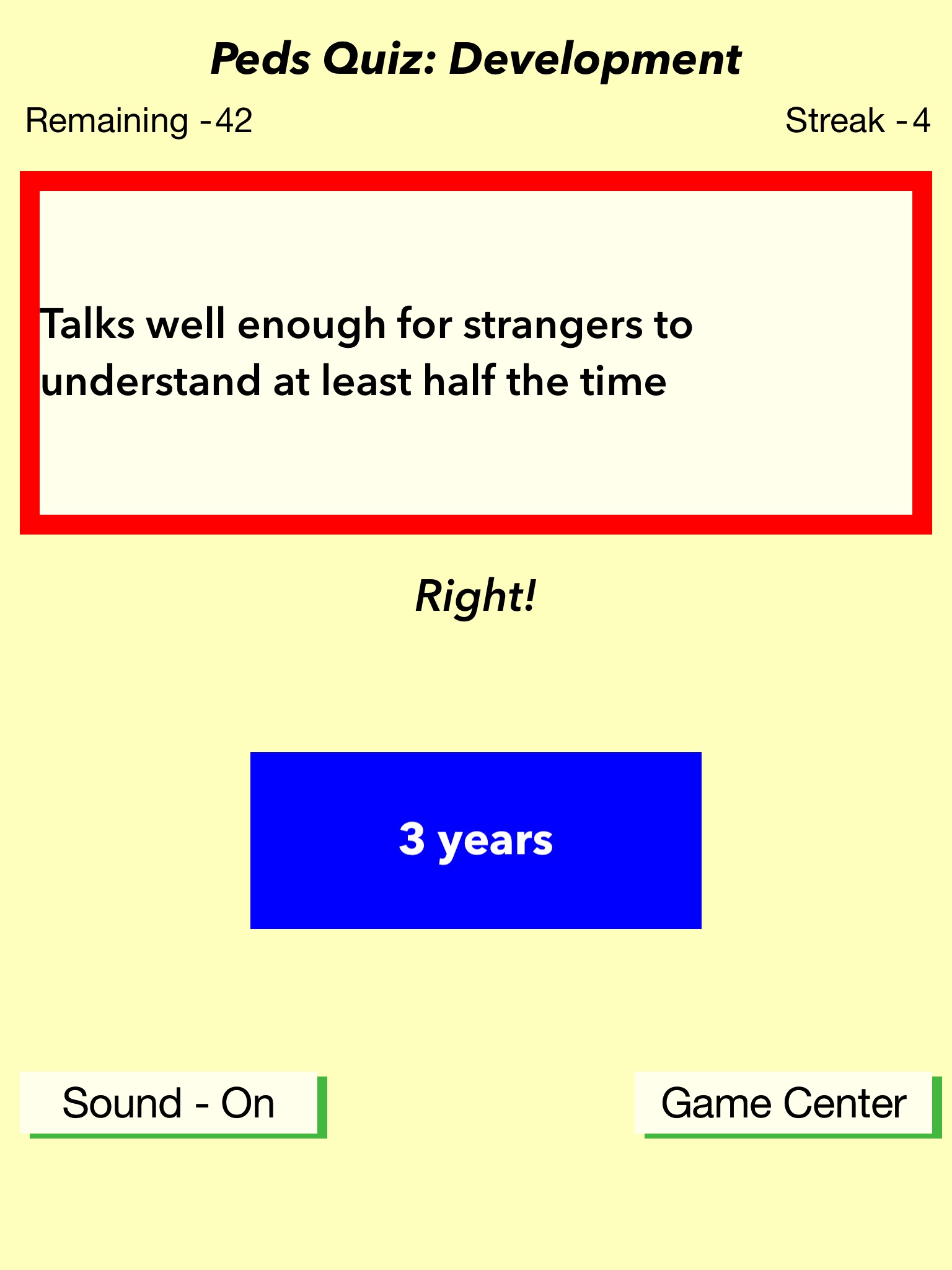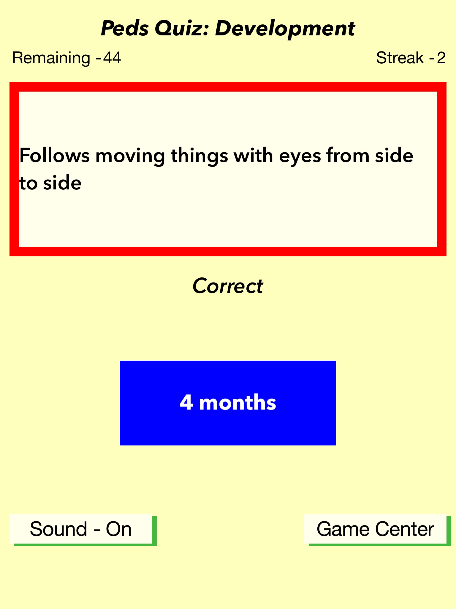 This is the perfect way to drill developmental milestones. Designed for pediatric residents, family medicine residents, and medical students, this app is for anyone who needs to know infant development.