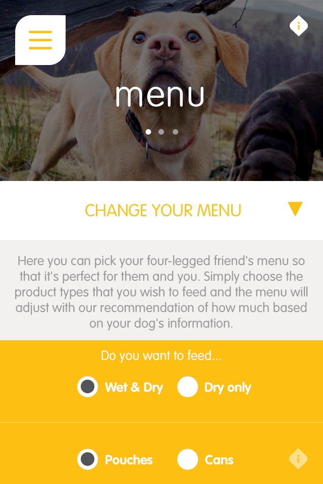 Just tap in your dog’s age, breed and size and we’ll help you to create a menu with the right amount of calories just for them. So whatever they like to eat, you can be sure they’re getting exactly what they need and nothing more.