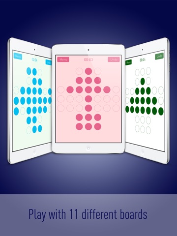 The famous board game Peg Solitaire in your iPhone, iPad and iPod Touch. It is a board game for one player involving movement of pegs on a board with holes. All you have to do is try to leave just one peg in the board.