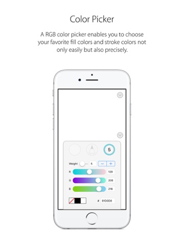 An RGB color picker enables you to choose your favorite fill colors and stroke colors not only easily but also precisely.