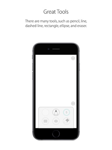 There are many tools, such as pencil, line, dashed line, rectangle, ellipse, and eraser.