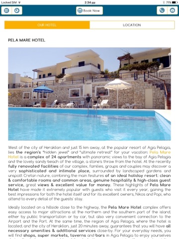 Pela Mare Hotel is a complex of 24 apartments with panoramic views to the bay of Agia Pelagia & the lovely sandy beach of the village, a stones throw from the hotel.