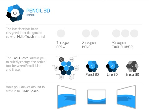 Express your ideas in a full 360º canvas. Pencil 3D by phelgo features a minimalist design that is wonderful to use and stunning to look at. Give your imagination an extra dimension.