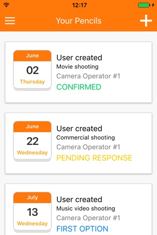 PencilMe is a shared calendar App for the film industry. The application PencilMe manages the work schedule of the filming crew. It shows the days you have jobs confirmed, days off and those with an option or Pencil. Automatically receive messages with Pencils. Indicating whether there are conflicts in the calendar. PencilMe shows any changes in the pencils giving continuously updated information for production companies to have real information on film crew availability for possible projects.