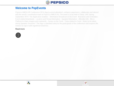 Pepsico AMEA HR Conference App to assist attendees, enhance experience, collaborate and interact with the events coordination team at PepsiCo AMEA HQ. The event is to be held in Dubai, UAE during September 2014. The Application enables:
