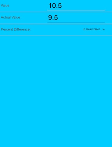 Calculate percent error values on the fly. Just input your values and the percent error value will be automatically calculated as you type.