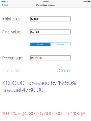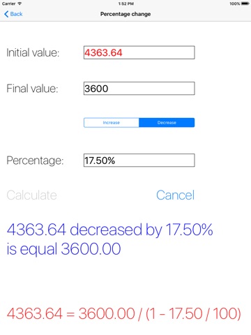 • INITIAL VALUE based on final value, increase/decrease and percentage
