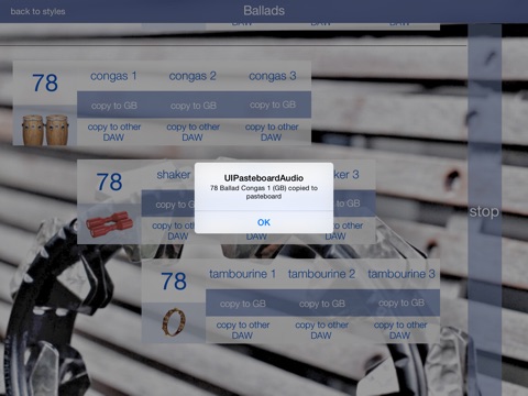 * Full percussion loop library for anyone making music on an iPad, iPhone or iPod Touch, containing 9 styles with Audiobus and Inter App audio support built in