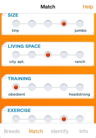 The IDENTIFY feature gives you the ability to search for a breed based upon physical attributes. The next time you see a dog and youre not sure what breed it is, the IDENTIFY feature can quickly figure out the answer. By simply selecting some of the dog’s physical characteristics such as “floppy ears” and “pushed in face” youll find out the mystery breed’s name in no time