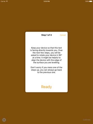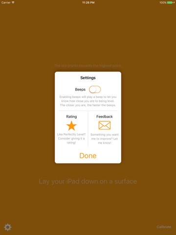 Perfectly Level is a highly sensitive and accurate spirit tool that is simple to use, and easy to understand. It emits beeps to let you know how close you are to being in level, even if you cant see the screen. The faster the beeps, the closer you are.