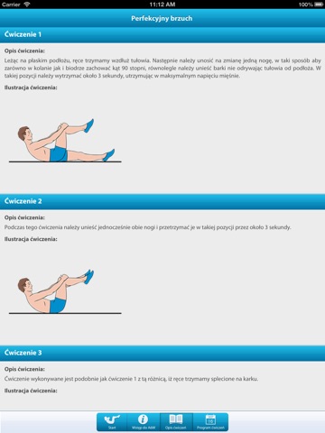 ćwiczenia sie zna i można z internetu dopatrzyć, jedyne co tu jest dobre to to, ze ma sie postęp i wie sie gdzie die jest. co trzeba poprawić: jak naciśnie sie ZACZYNAJ to ćwiczenia startują za szybko, nie zdąży sie telefonu odłożyć ma bok. powinno byc 5 sekund przed startem do nastawienia lub 10 zeby mieć czas przygotować sie ZMIANA to hasło które trwa za krótko, powinno byc 3-4 sekund przerwy na zmianę. nożyce tez sa za szybkie, jesli ma sie wykonywać ćwiczenia czysto, to tempo ćwiczeń powinno dostać 0,5 sekundy wiecej na czyste i staranne wykonanie miedzy ZMIANAMI bez tych poprawek odwala si ćwiczenia aby zdążyć za grafika, niezbyt mądre