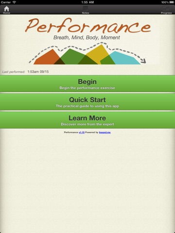 This app is used for performance anxiety or general stress. In less than one minute your attention is gently guided for better focus and awareness. Use it throughout the day to expand your mental space for input while also harnessing more of your expert training and personal experiences during response.