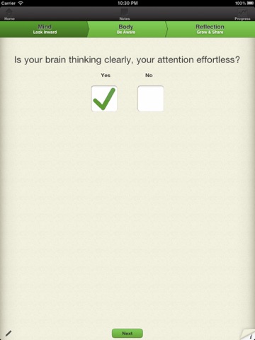 Cognitive Guide - expertly created sequence of questions that will help increase attention and focus. The sequence includes simple questions that create mind and body awareness in the moment and logs the input so that you can monitor your progress overtime.