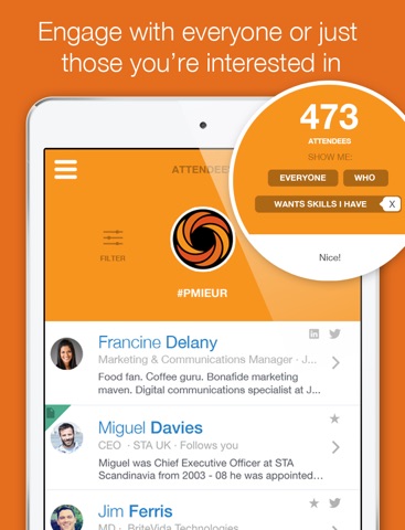 + See which of your existing LinkedIn and Twitter contacts are attending.