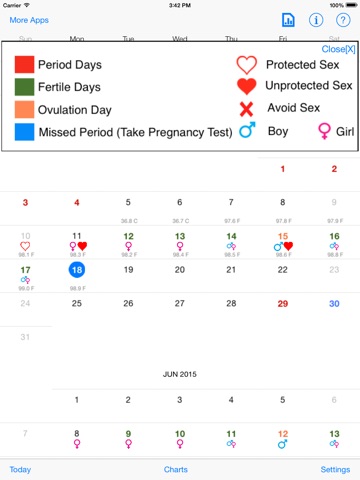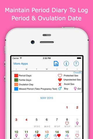 • Allows you to enter intimacy data of protected/unprotected sex to check whether you are timing it correctly to get pregnant