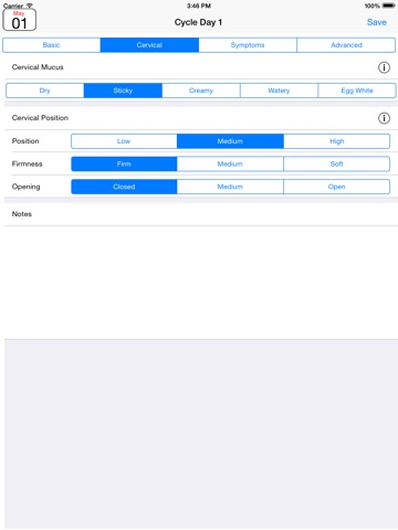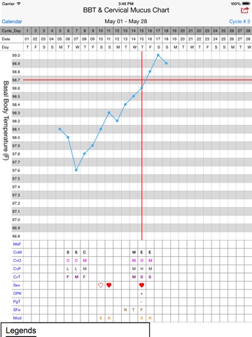 • Gives you detailed charts and graphs of BBT, cervical mucus, position, opening and firmness