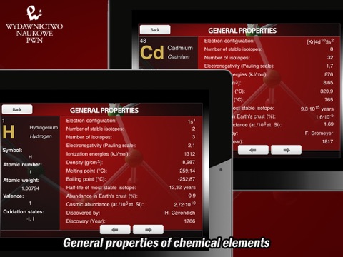 The application allows browsing through 114 chemical elements on the periodical table in two modes: whole table view mode and single element view mode. The application also allows searching the elements according to name or browse through their list in alphabetical order.