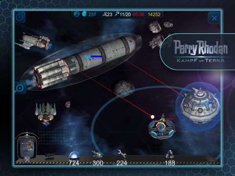 "Perry Rhodan - Battle for Terra" is a strategy game that is based on the universe of the Perry Rhodan science fiction series. The game starts with the first mission to moon, where Perry Rhodan finds a damaged space ship build by the Arkonids. The Arkonids had send a distress call that was unfortunately received by a lizard race, the Topsids, who are interested in harvesting the technology from the Arkonids. With the help of one of their scientists named Crest and a small, still functioning vessel from the big spaceship, Perry Rhodan has to fight against the lizards during the first level of the game - also to protect Earth against the aliens. The game itself is an innovative mixture between real time strategy and tower defense. Please download the free app "Perry Rhodan: Kamp um Terra Schiffsalmanach", that contains a complete database of the ships available in the game, to check if the performance of your device is sufficient for the game. Visit http://www.gamopolis.com to find more about the story and the other levels of the game.