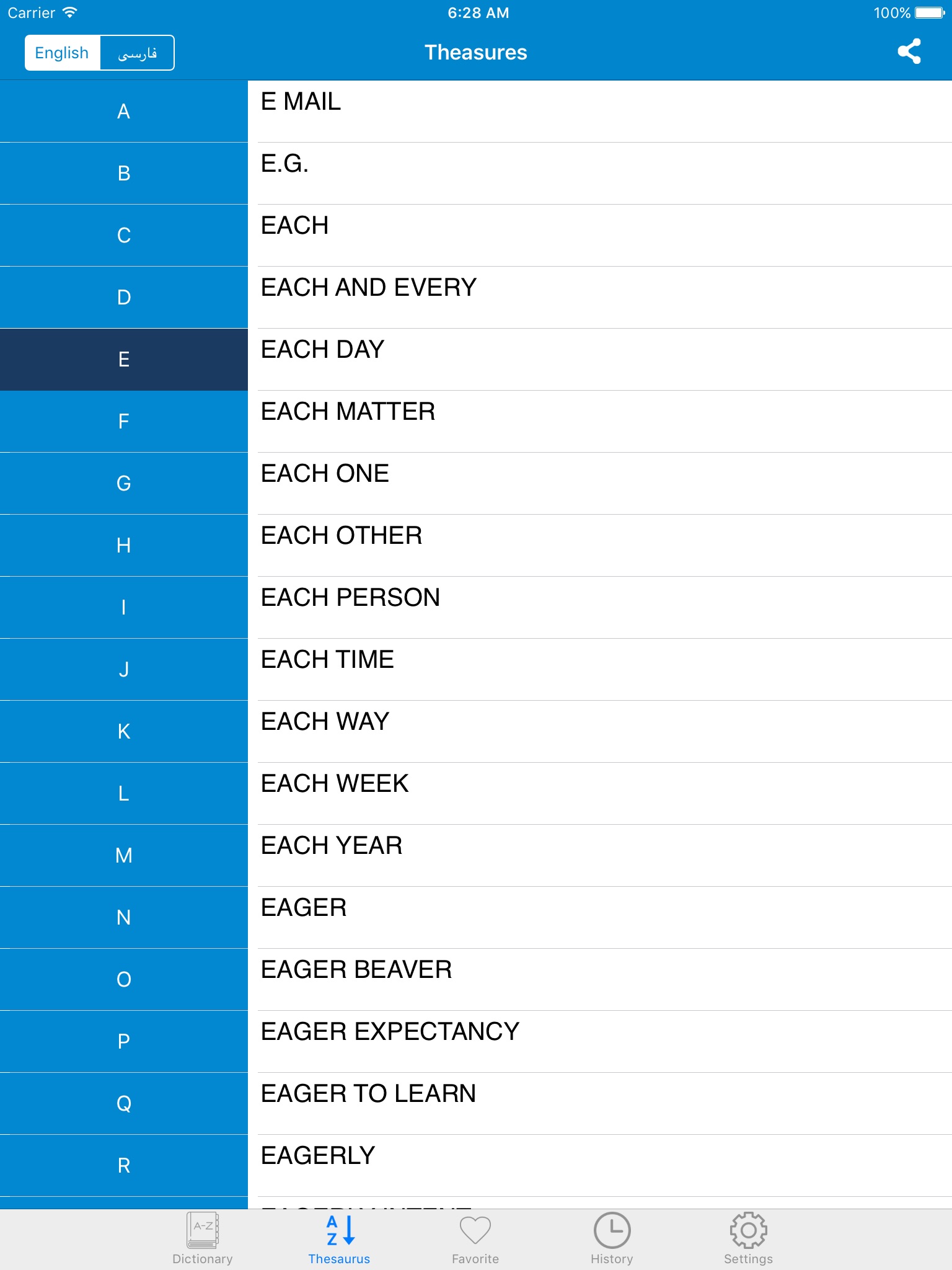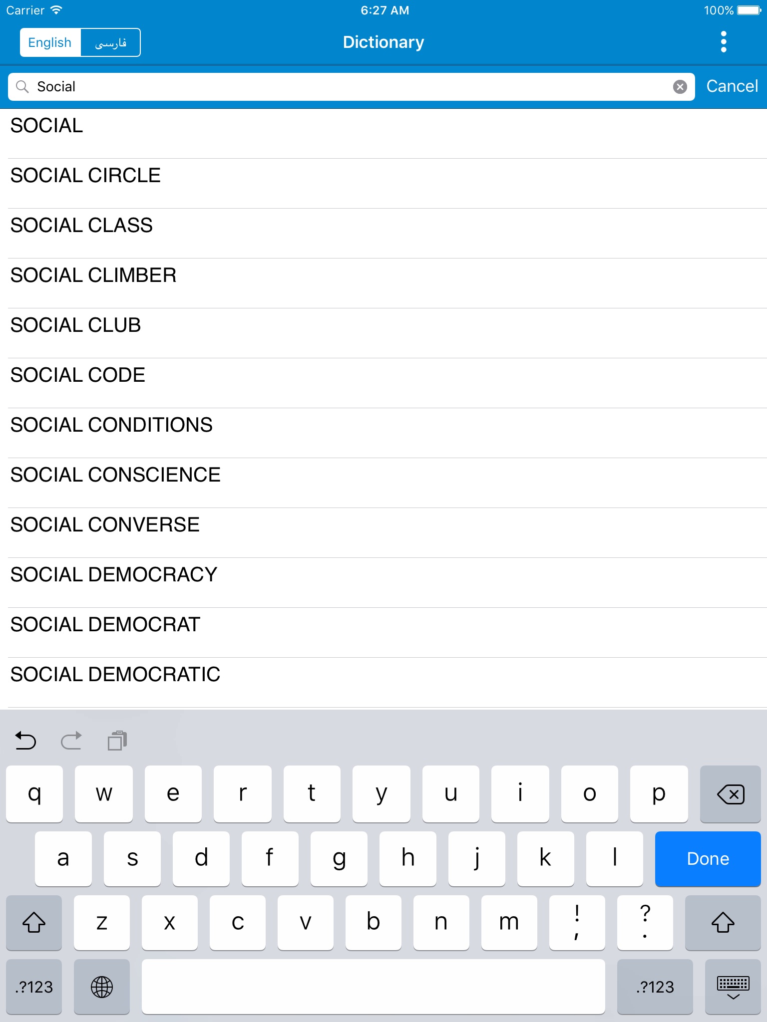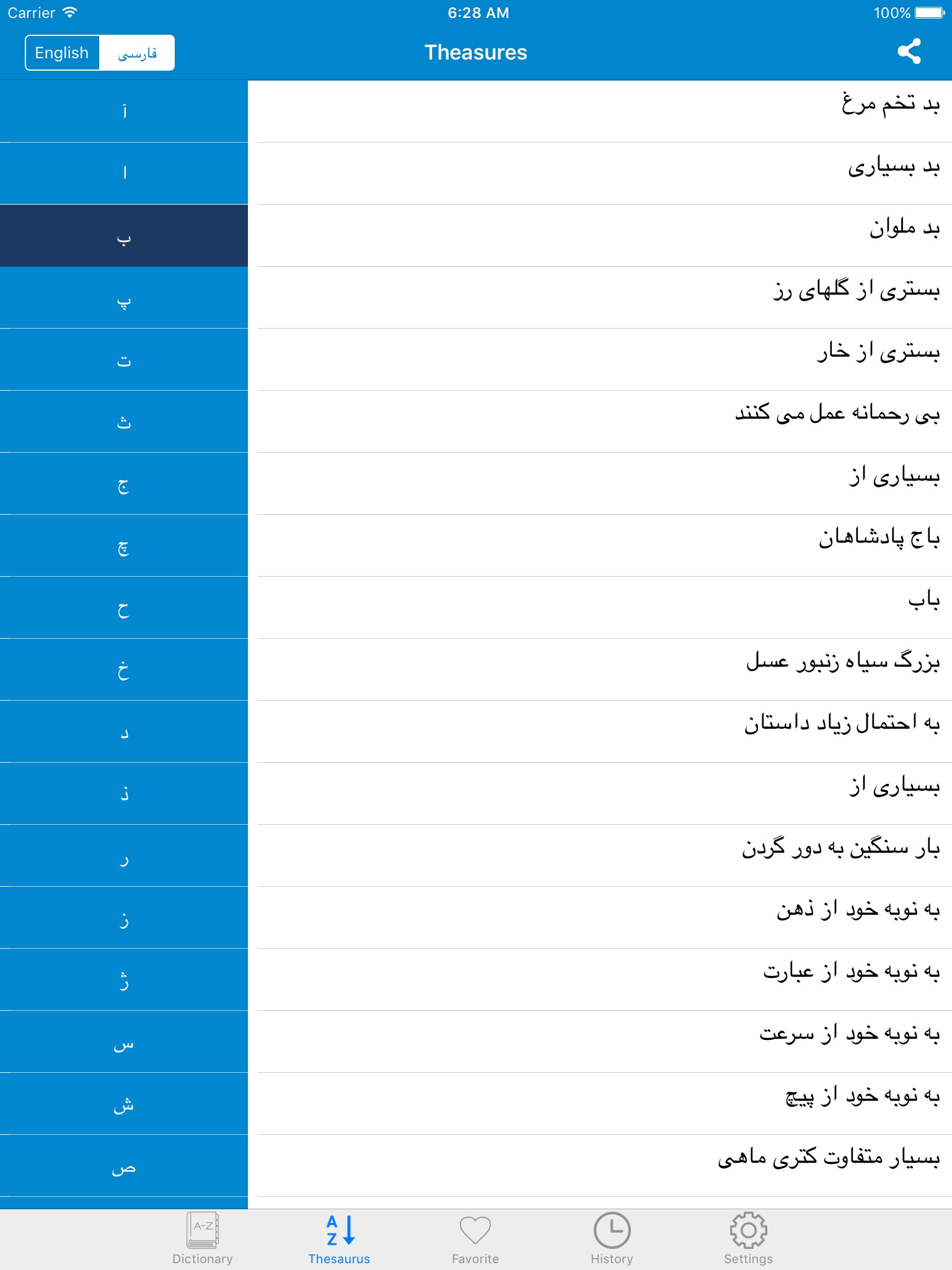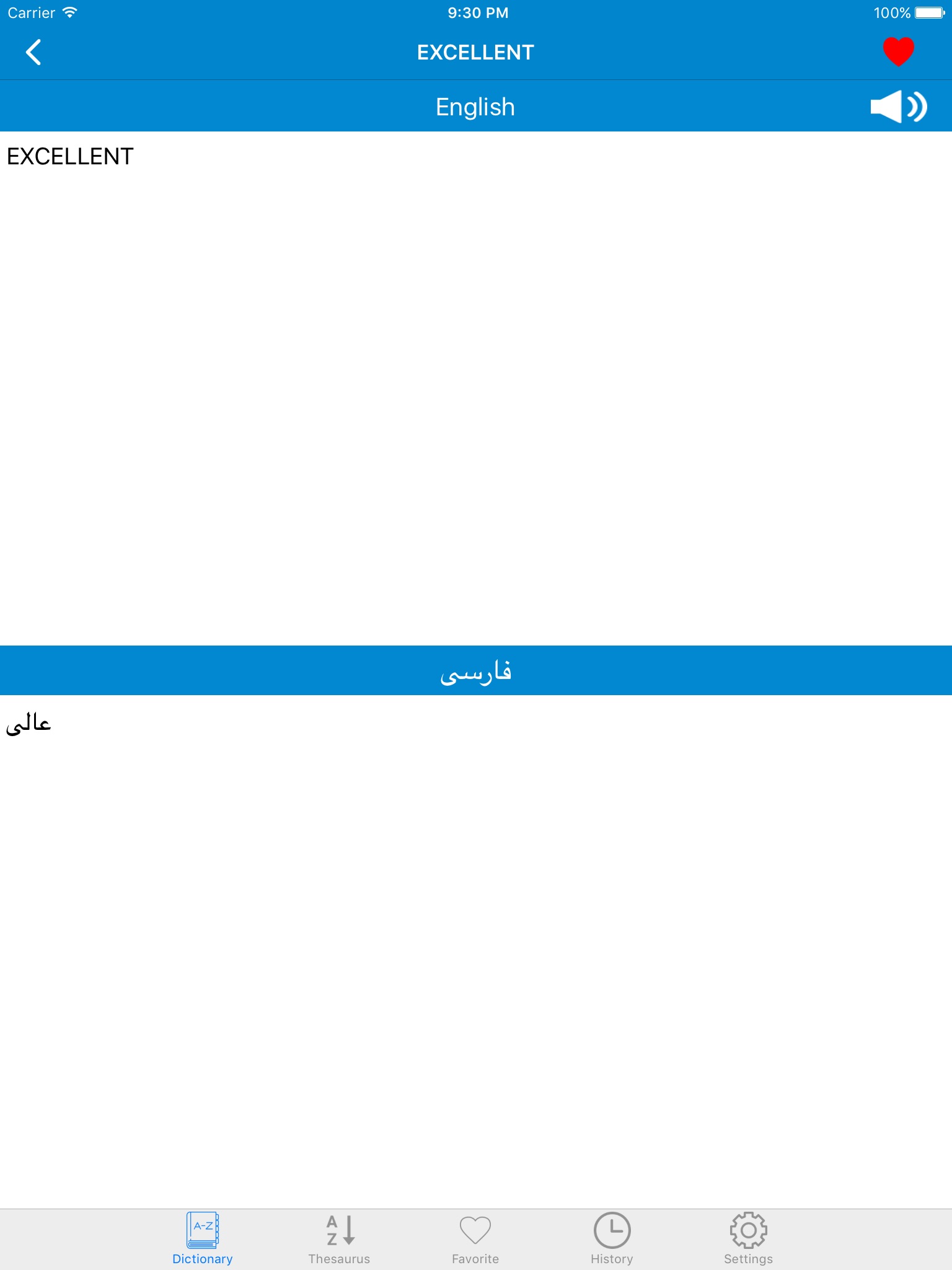 Persian to English – In addition to giving English to Persian meanings the app also allows you to search for Persian words in English. This is especially beneficial for Irani and Persian speaking users who want to find Persian to English meanings of difficult words in this dictionary. Download the app now and find words meanings from a comprehensive farsi dictionary database.
