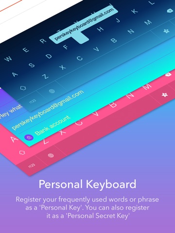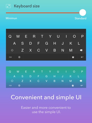 Create your own unique keyboard style using Keyboard Size, Background Themes(Color Picker, Solid Colors, Gradation Colors), Character Color(Color Picker, Solid Colors, Gradation Colors), Character Size, Character Style, Invisible Keyboard settings.