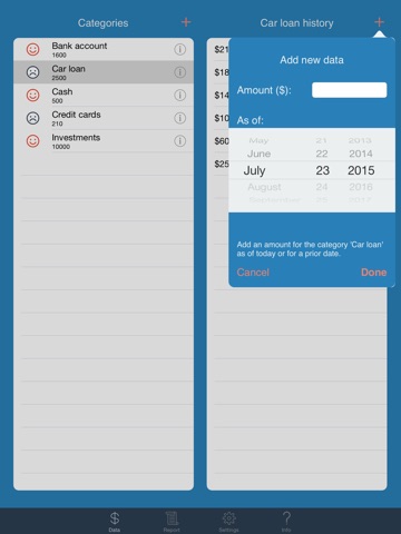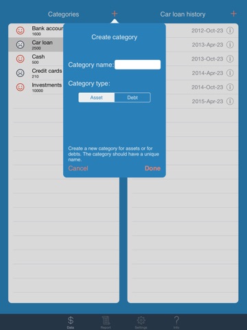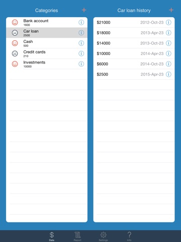 - Follow as many multiple assets and debt categories as needed