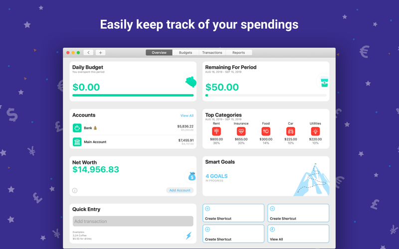 MoneyCoach is helping millions of people aggregating all their accounts & finances in an easy and intelligent way. MoneyCoach changes your financial behaviour, so that you can save more money. Now all of this is available for your Mac.