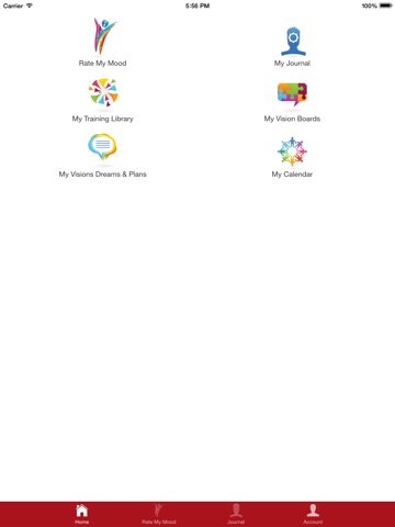 The application provides comprehensive interactive tools that include: Rating Your Mood, Electronic Journaling, Vision Board Collaging, Goal Setting, and a Multi-Media Library.
